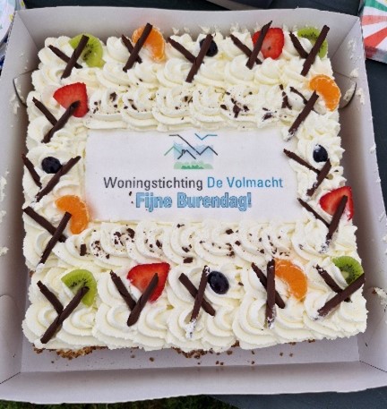 π Een smakelijke verrassing Als blijk van waardering bracht De Volmacht bij beide locaties een feestelijke taart langs. Een kleine traktatie met een grote boodschap: dankjewel aan alle bewoners die zich inzetten voor een prettige, veilige en betrokken buurt.
